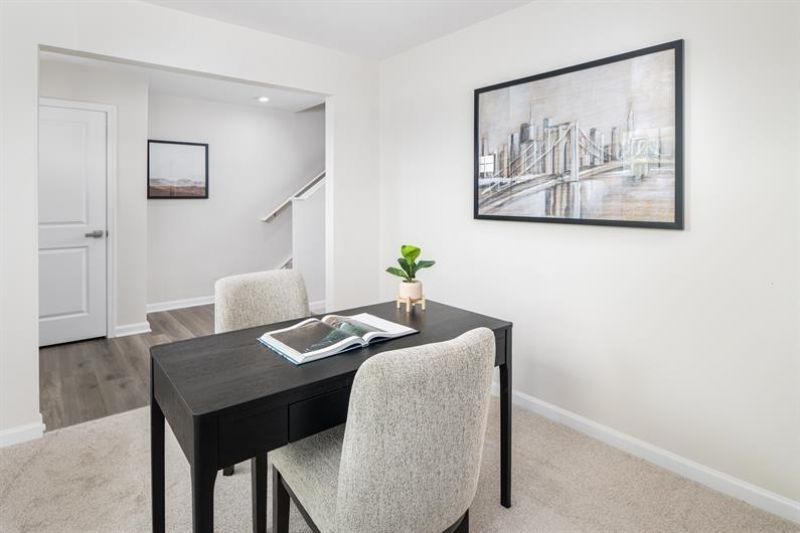 The Hazel features 5 bedrooms and 3 bathrooms in over 2500 square feet of space. Off the foyer is a private flex space perfect for a home office or play room. Plus, with an open-concept main level, hosting the holidays or birthday parties are easier than ever. Tucked back off of the kitchen and dining area is a first floor bedroom with a full bath next to it so your out-of-town guests or in-laws can have a space of their own. Upstairs is your owner's suite complete with 2 walk-in closets and attached bath. Rounding out the 2nd floor are 3 additional bedrooms, a loft, another full bath, and your laundry room. Need another bedroom for your growing family? Turn the loft into one, giving you a total of 6 bedrooms! *Disclaimer* One or more photos was AI Rendered or virtually staged The "Hazel" is buildable floor plan offered in the Hammons Farm community. Photos in this listing only show potential selections and are not a representation of an exact structure built in the Hammons Farm community.