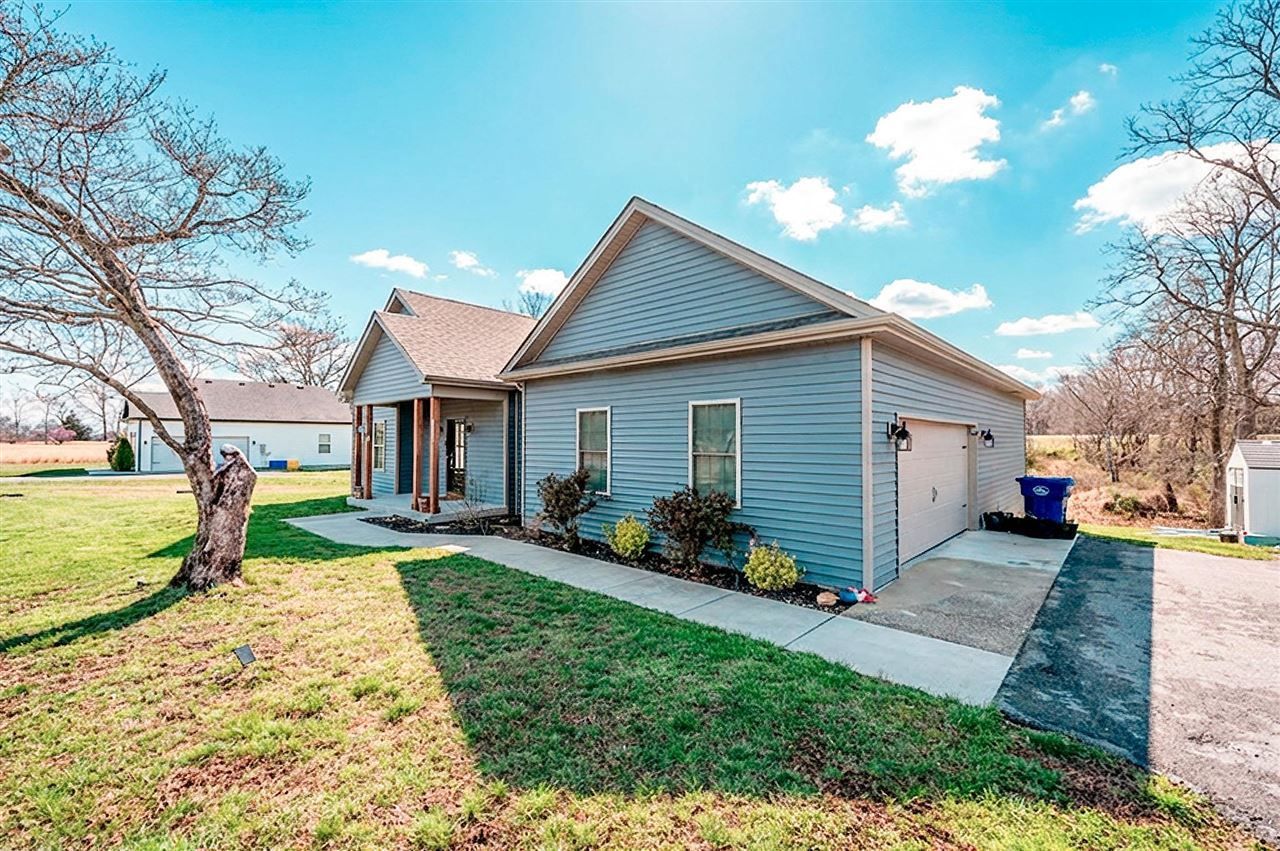 Beautiful 3-bedroom, 2-bath home with approximately 1,700 sq. ft. situated on a spacious .92-acre lot just outside of Halfway, KY. This well-maintained home features a welcoming living room with a cozy gas log fireplace and attractive LVT and tile flooring throughout. The kitchen offers granite countertops, a pantry, and great workspace for cooking and entertaining. The primary suite includes a double vanity, separate shower, and relaxing soaker tub. Additional highlights include a laundry room, mud room, and a 2-car garage. Enjoy the peaceful setting from the covered front porch or the covered back deck overlooking the great lot. A storage shed provides extra space for tools and equipment.